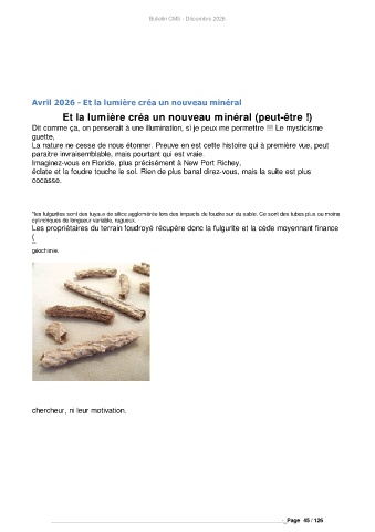 *les fulgurites sont des tuyaux de silice agglomérée lors des impacts de foudre sur du sable. Ce sont des tubes plus ou moins