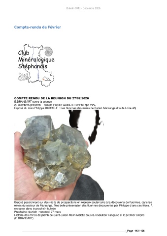 Exposé du mois Philippe DUBOEUF : Les fluorines des mines de Barlet- Marsange (Haute Loire 43)